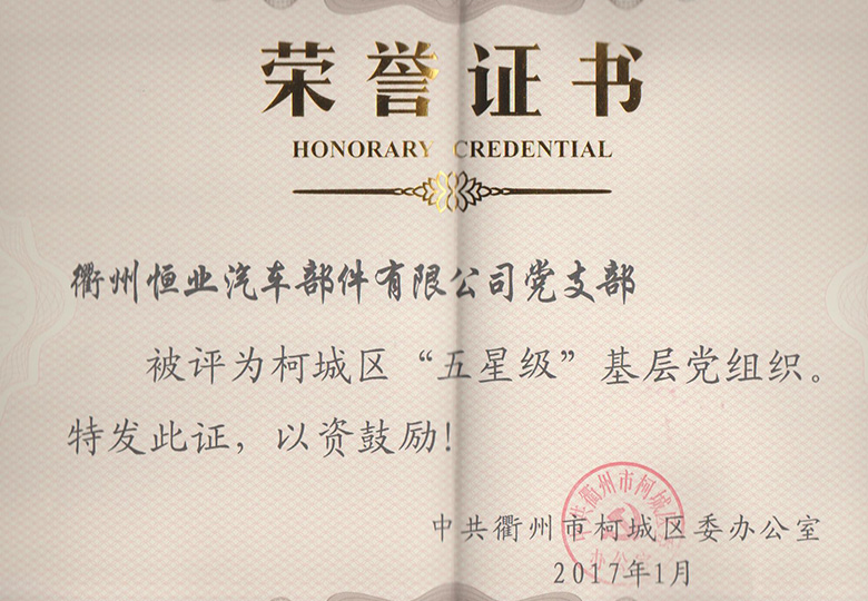 2017年1月榮獲柯城區(qū)“五星級(jí)”基層黨組織稱號(hào)